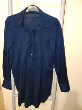 Camicia in seta di un vivace blu elettrico. Presenta dettagli ricercati sulle maniche e sul collo.misure 41 cm spalle giro seno 53 lunghezza 75 cm - Tessuto: Seta - Colore: Blu elettrico - Maniche lunghe con polsini elasticizzati - Collo a camicia - Chiusura con bottoni frontali apertura nascosta