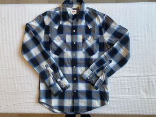 Iconica camicia Levi's originale stile Western in morbida flanella di cotone. Capo versatile, perfetto per un look casual o grunge. • Modello: Western Shirt con carré a punta • Colore: Quadri (plaid) blu, grigio e bianco • Dettagli: Bottoni a pressione (pearl snaps) perlati, doppia tasca sul petto e Red Tab Levi's. • Taglia: S • Composizione: 100% Cotone • Condizioni: Ottime, tessuto morbido e colori vivaci. Ben conservata. Ideale da sola o aperta sopra una t-shirt. #levis #western #flanella #plaid #grunge #casual #vintage #streetwear #checkshirt #camicia #quadri #redtab