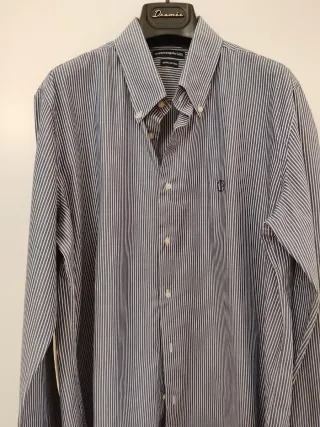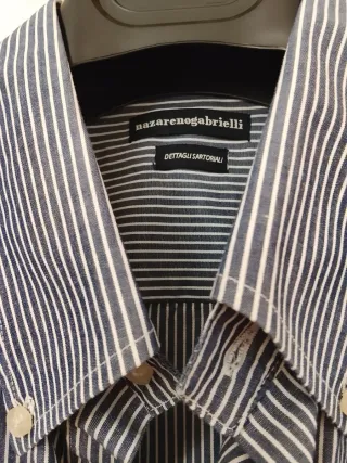 Vendo stock di camicie da uomo 6 a maniche corte e 2 a maniche lunghe. La camicia è blu, a righe sottili ed è in ottime condizioni. - Tessuto fresco e leggero - Colletto classico - Chiusura con bottoni Vestono tutte L