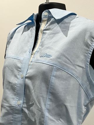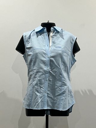 Camicia senza maniche di colore blu. - Collo a camicia scrivetemi seguitemi accetto proposte e se posso sconto - Chiusura con bottoni frontali - Vestibilità comoda