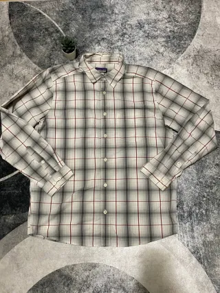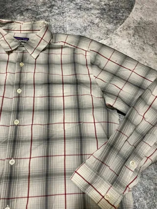 Camicia a quadri da uomo Patagonia. Presenta un motivo a quadri con dettagli rossi e grigi. - Maniche lunghe - Chiusura con bottoni - Collo classico
