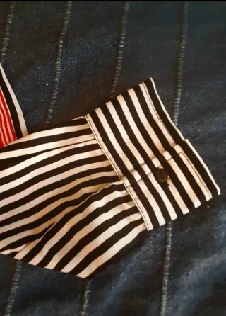 Camicia a maniche lunghe con fantasia a righe.celeste e rosa Taglia xl altre misure in foto per precisione e correttezza per evitare malintesi e resi Elente e giovane - Fantasia a righe verticali. - Colletto classico. - Vestibilità Slim. Già scontata NON Spedisco con Poste Italiane