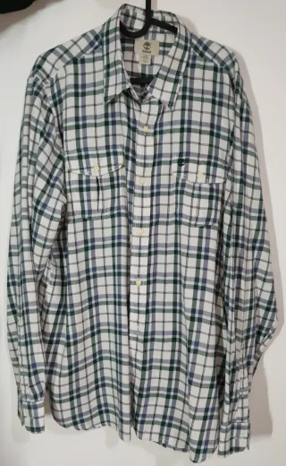 Camicia Timberland taglia L regular con quadri verdi e blu su base bianca. Usata solo un paio di volte.