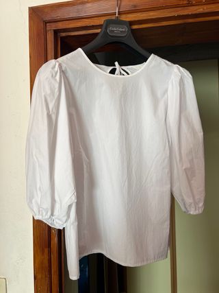 Bellissima camisa blusa camicia bianca in cotone, perfetta per l'estate. - È a maniche lunghe, con polsini arrotolati. - Ha una chiusura con bottoni. T.s-m