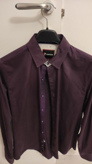 Vendo insieme due camicie uomo in votone taglia M,una viola con fantasie bianche marca sonny bono,una nera rigata marca trend,in buone condizioni