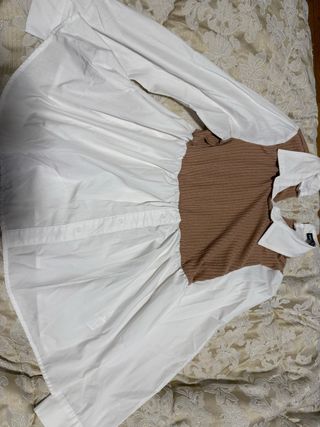 Camicia a maniche lunghe con un design a blocchi di colore. La parte superiore presenta una trama a coste, mentre la parte inferiore è una camicia bianca. - Maniche lunghe - Collo a camicia - Chiusura con bottoni