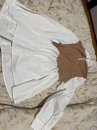 Camicia a maniche lunghe Zara. - Tessuto leggero e traspirante. - Design moderno con elastico in vita. - Colletto classico e chiusura con bottoni.