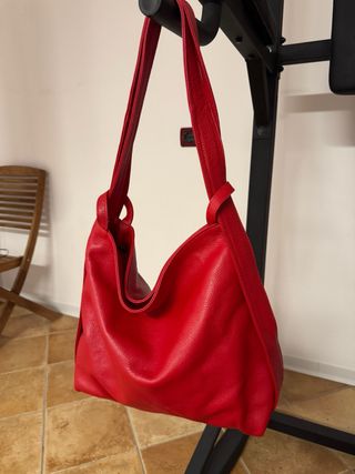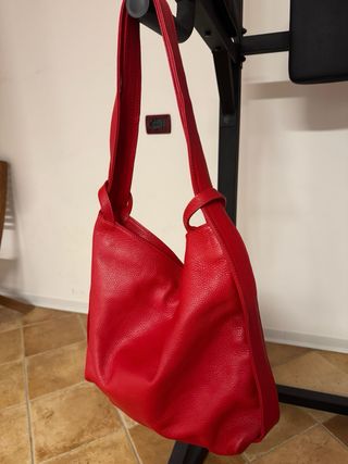 Borsa donna a doppia modalità di utilizzo: normale o a zaino in vera pelle, dal colore rosso vivace. Un accessorio versatile e capiente, nuovo mai usato. - Materiale: vera pelle - Colore: rosso