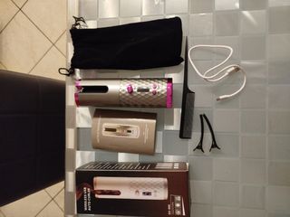 Arricciacapelli elettrico senza filo ricaricabile con USB. Temperatura regolabile da 150 a 200 gradi, doppio senso di rotazione, completo di custodia, libretto di istruzioni e scatola. Nuovo mai usato.