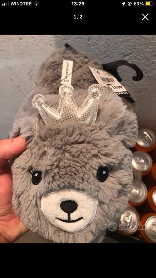 Vendo pantofole In extenso a forma di orsetto. Sono morbidissime e perfette per tenerti al caldo durante i mesi più freddi. - Sono di colore grigio chiaro. - Hanno una coroncina argentata sulla testa. - Sono in ottimo stato.