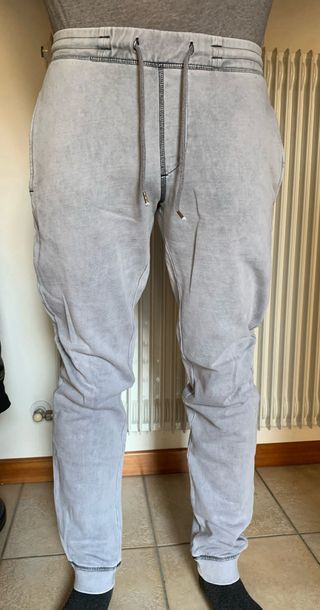 Vendo 2 paia di pantaloni sportivi, uno grigio e uno blu, taglia S. Praticamente nuovi, usati poco. Uno dei due ha solo una piccola macchia davanti sulla destra, come da foto.