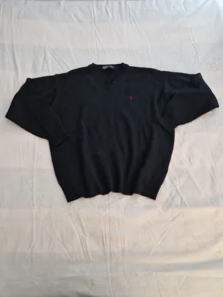 Maglione girocollo Ralph Lauren in maglia nera. Presenta il classico logo del cavallino ricamato sul petto. - Scollo a V - Maniche lunghe - Orlo e polsini a costine 100% lana d'agnello