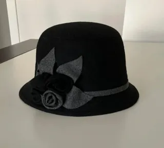Splendido sombrero da donna, ideale per completare il tuo outfit. Design classico, decorato con un nastro e un fiore. Materiale in feltro.