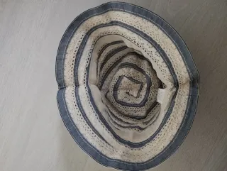 Cappello da donna in denim e pizzo, taglia unica. Un accessorio elegante e versatile. - Design a tesa larga. - Dettagli in pizzo floreale. - Bordatura in denim.
