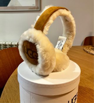 Paraorecchie del marchio UGG per donna. Acquistati a New York. Mai usati. - Materiale esterno in pelle scamosciata. - Fodera interna in pile. - Dettaglio del logo UGG sui lati.