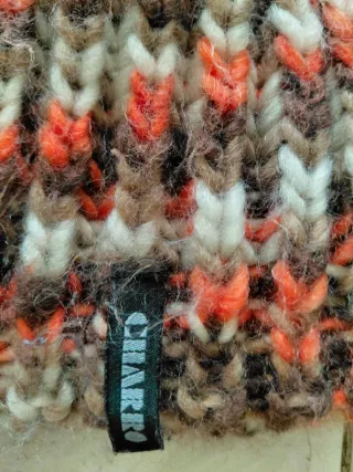 Cappello invernale con pompon, perfetto per le giornate fredde. - Design a maglia. - Pompon bicolore marrone e arancione. - Etichetta del brand CHARRO sul bordo.