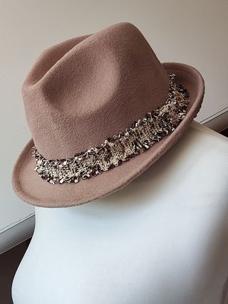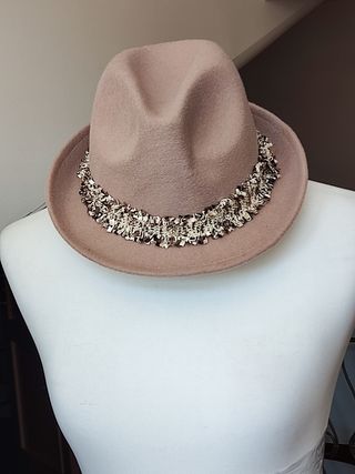 Nuovo senza cartellino cappello donna estivo grigio perla con perline dello stesso colore Larghezza 25cm, lunghezza 20cm