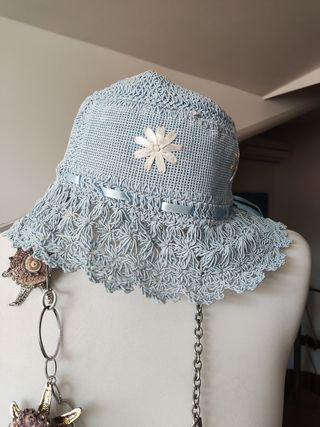 Usato poche volte romantico cappello donna azzurro. Ha una piccola macchia come si vede nelle foto