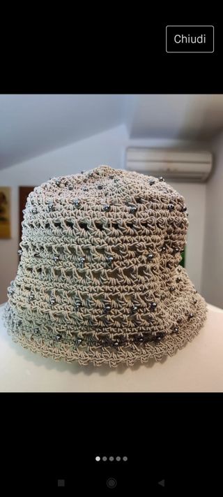 Indossato solo due volte meraviglioso cappello donna con fiocco e perline Composizione 100% cotone