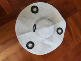 Indossato solo due volte, meraviglioso cappello donna bianco con ricamo nero, grigio e bianco Composizione 100% cotone
