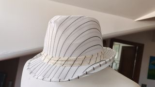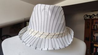 Bellissimo cappello da donna, bianco con righe nere. - Modello fedora - Tessuto a righe sottili
