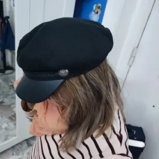 Cappello da donna con un design moderno e una visiera. - Dettaglio treccia sulla fascia. - Bottone decorativo sul lato.