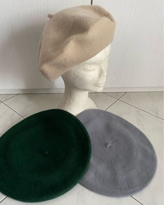 Cappello basco vintage da donna, un accessorio classico per ogni guardaroba. 3 varianti di colore, grigio, verde scuro e beige, diametro cm 28/29. Il prezzo di 24,80, è del singolo capo, nuovi, intatti, tessuto 100% lana, caldi e morbidissimi ( E1 Set 2 armapinomarr2 bass) w. D sing. D. M. NY sing - Design a berretto. - Materiale morbido al tatto.