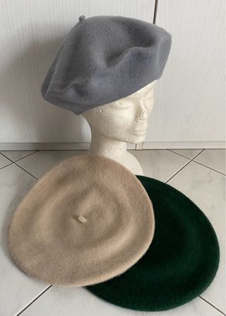 Cappello basco donna TU, capo vintage, perfetto per completare ogni outfit. Nuovo con cartellino, tessuto 100% lana, caldo e morbidissimo, tre varianti di colore, beige, verde scuro e grigio, il prezzo e’ riferito al singolo capi, larghezza cm 29 ( art E1 set 2 armapinomarr2bass) W.D sing. NY sing - Colore beige - Colore verde - Colore grigio