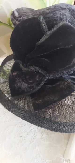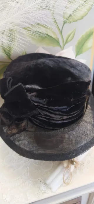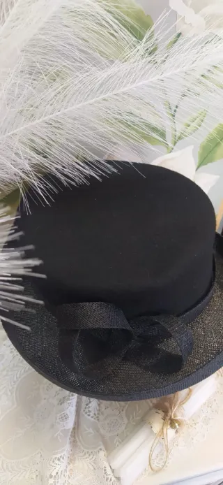 Elegante cappello da donna, un accessorio vintage che evoca lo stile degli anni '60. - Dettagli in velluto nero. - Tesa in tessuto a trama fine.
