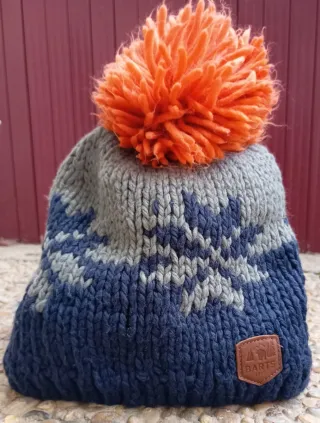 Berretto in maglia spessa Barts. Design invernale con disegno a due toni e pompon di lana arancione. Design a maglia spessa. Pompon di filo arancione. Dettaglio in pelle con logo nella parte anteriore inferiore.
