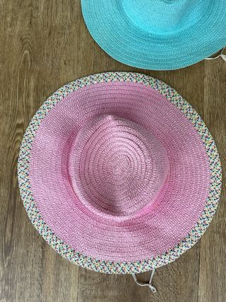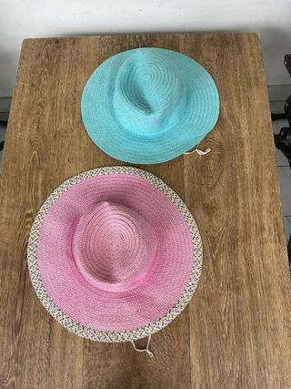 Due cappelli estivi, uno rosa e uno celeste, perfetti per la bella stagione. Sono in ottime condizioni. - Realizzati in paglia intrecciata - Adatti a bambini e adulti - Ideali per proteggersi dal sole