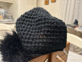 Cappello fatto a mano, perfetto per completare il tuo look. - Design unico e artigianale. - Morbido pompon in pelliccia sintetica nera.