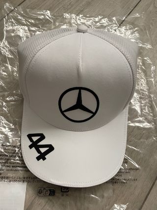 Cappello da baseball ufficiale Mercedes-AMG Petronas, modello Lewis Hamilton. - Design con logo Mercedes e numero 44. - Parte posteriore in rete traspirante. nuovo con etichette prodotto ufficiale!