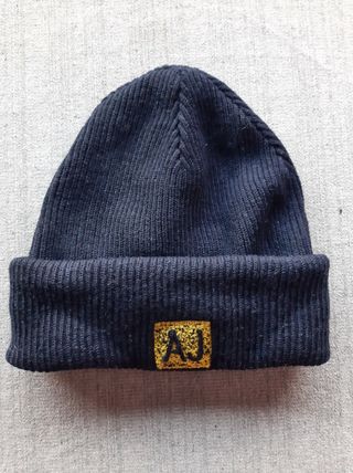Berretta Armani Jeans in maglia a coste. Presenta un patch quadrato color oro con logo. - Colore blu navy. - Patch logo color oro.
