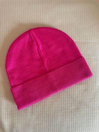 Cappello rosa fluo in maglia. - Logo Brekka sul davanti. - Design a coste.