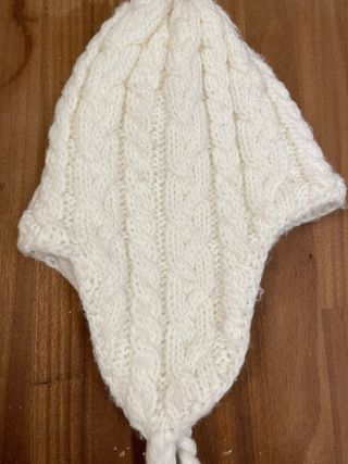 Morbido cappello in lana per bambina, perfetto per le giornate più fredde. Presenta un classico motivo a trecce. - Taglia 6/8 anni. - Colore bianco panna.