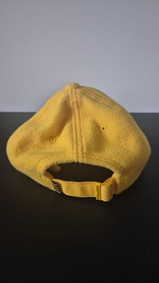 Cappello Adidas in pile, modello Adventure. - Colore giallo vivace. - Patch ricamata con logo Adidas e motivo floreale. - Chiusura regolabile sul retro.