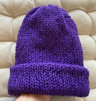 Berretto in lana colore viola Realizzato da me a mano ai ferri a maglia - Design classico a cuffia. - Orlo ripiegabile. Taglia unica (altri articoli fatti a mano nel mio armadio)