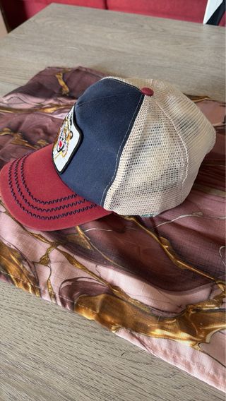 Conservato con estrema cura, l'ologramma di autenticità ancora perfettamente integro. Il ricamo dello stemma frontale è ancora nitido e i colori bordeaux e blu vividi come quando mi è stato regalato. Puoi verificare dalle diverse angolazioni l'ottimo stato sia all'esterno che all'interno, inclusa l'etichetta che ne certifica i materiali e l'originalità. Il tessuto è un mix di cotone e poliestere che ha mantenuto bene la forma. Nell'ultima foto puoi vedere una leggera ossidazione al centro,sul piccolo inserto in metallo E' un modello taglia unica,facilmente regolabile sul retro, veste comodamente