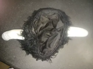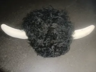 Un divertente copricapo in pelo con un paio di corna. - Materiale in finto pelo nero. - Corna bianche.