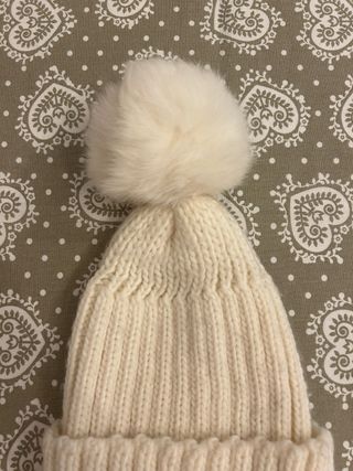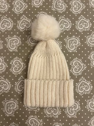 Cuffia invernale con pon pon in pelo color panna