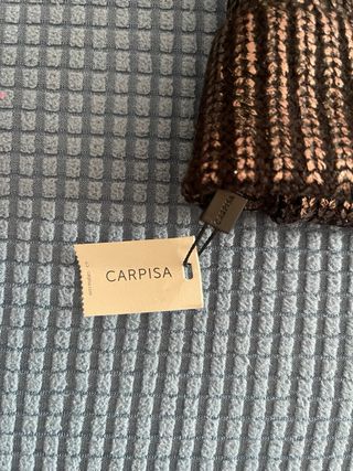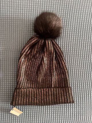Cappello invernale da donna Carpisa, perfetto per completare il tuo look. - Design a coste con fili dorati. - Pompon in pelliccia sintetica. - Etichetta del brand visibile.
