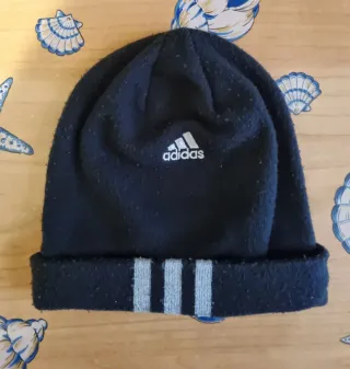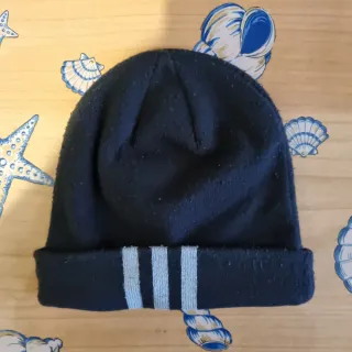 Cappello Adidas nero con risvolto e strisce. - Logo Adidas ricamato. - Strisce grigie sul risvolto.
