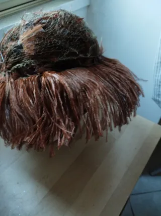 Elegante cappello anni 40, realizzato con piume di struzzo. - Dettagli in piume di struzzo. - Tonalità naturali che variano dal marrone all'oro.