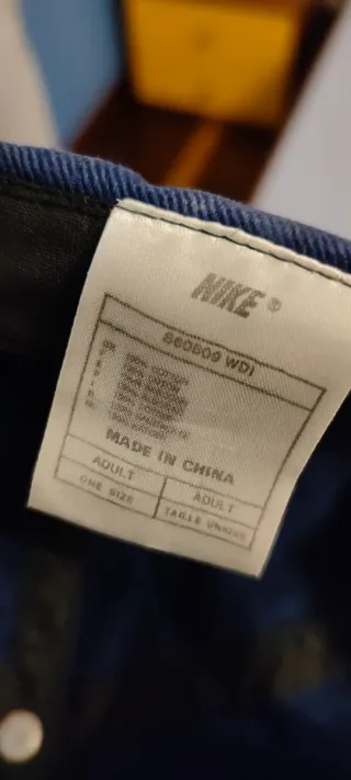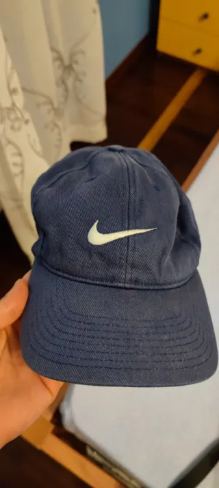 Cappello da baseball Nike. - Logo Nike ricamato sul davanti. - Colore blu. Difetto nella chiusura di plastica, risulta spezzato e segni di usura dati dal tempo (leggermente sbiadito) come da foto.