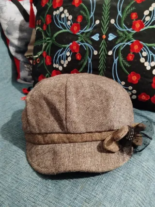 Elegante cappello da donna in tessuto marrone, perfetto per completare ogni outfit. Usato pochissimo, in perfette condizioni. - Dettaglio floreale applicato sul lato. - Nastro decorativo attorno alla base. - Tessuto testurizzato.
