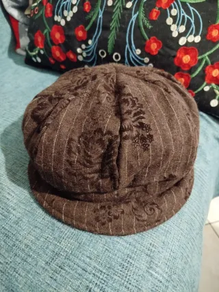 Cappello da donna con una fantasia floreale e righe sottili. Mai usato. - Fantasia floreale in velluto. - Righe verticali chiare.