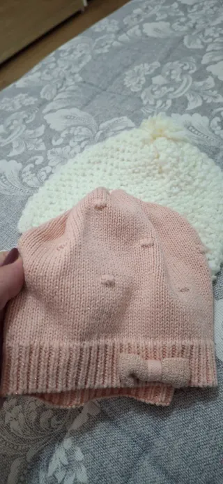 Set 2 cappellini 24/36 mesi. Dettagli: Un cappellino rosa, con effetto brillantini (le foto non rendono,ha un bellissimo effetto brillantinato)ovs, 24/36 mesi. 50/52 cm. 95% cotone. Cappellino bianco con bon bon, ricevuto in regalo, senza etichetta, per cui ho dubbio se acquistato o realizzato a mano. Praticamente nuovo, mai indossato. Vestibilita' 24/36 mesi. Set di due cappellini per neonata, uno rosa e uno bianco, perfetti per completare il look. - Cappellino rosa con pois e fiocchetto. - Cappellino bianco con pompon.