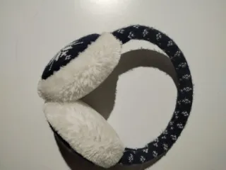 Morbidi paraorecchie con un grazioso motivo a fiocchi di neve, perfetti per le giornate fredde. - Design con fiocchi di neve su sfondo blu scuro. - Rivestimento interno in morbida pelliccia bianca.