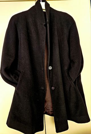 Cappottino per donna di panno, taglia L / XL. Con spalline e manica raglan.Chiusura con 2 bottoni 2 tasche esterne. Usato 1/ 2 volte. Praticamente nuovo (Non ho potuto inserire il materiale perché non c'è tra le varie opzioni. Tessuto: panno.